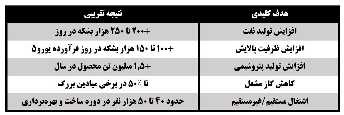 نمونهای از نتایج سرمایهگذاری 700همتی یا همان 7میلیارددلاری در صنعت نفت کشور در بخشهای مختلف در جدول زیر ارائه شده است؛